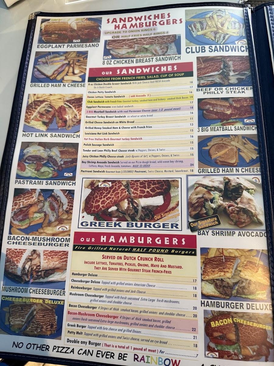 Prepare to embark on a sensory journey as you walk into Rainbow Pizza. The moment you step inside, you're enveloped in the warm, inviting aromas of fresh dough baking in the oven and the tantalizing scents of home-cooked Italian favorites. The atmosphere is lively and welcoming, creating a sense of community that makes patrons feel as though they are dining with family.